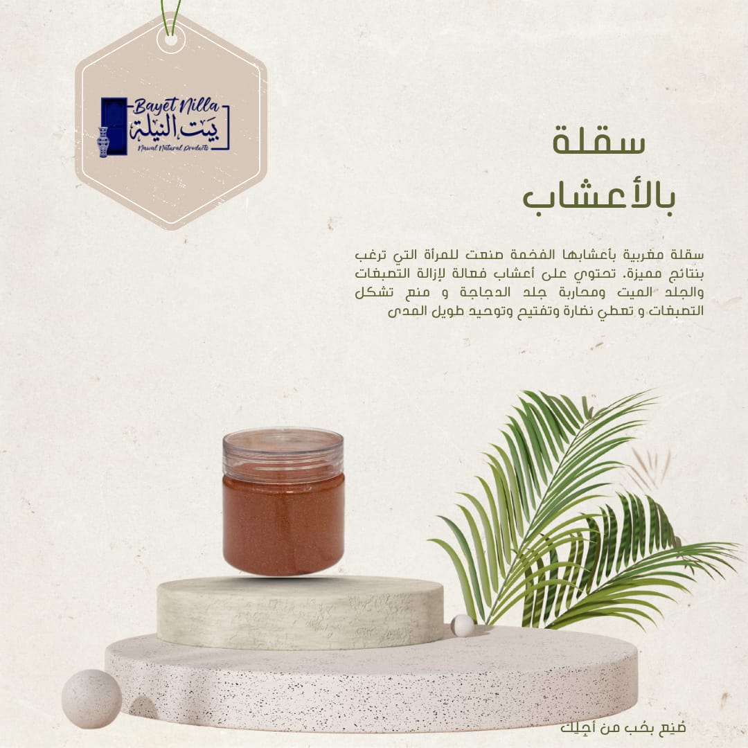 الصقلة المغربية طبيعية ١٠٠% تستعملها العروس المغربية كأهم طقس في حمامها لتبيض و إزالة الخلايا الميتة وتحارب جلد الدجاجه وتساعد علي تنعيم البشرة وهي خليط لمجموعة من الأعشاب الطبيعية